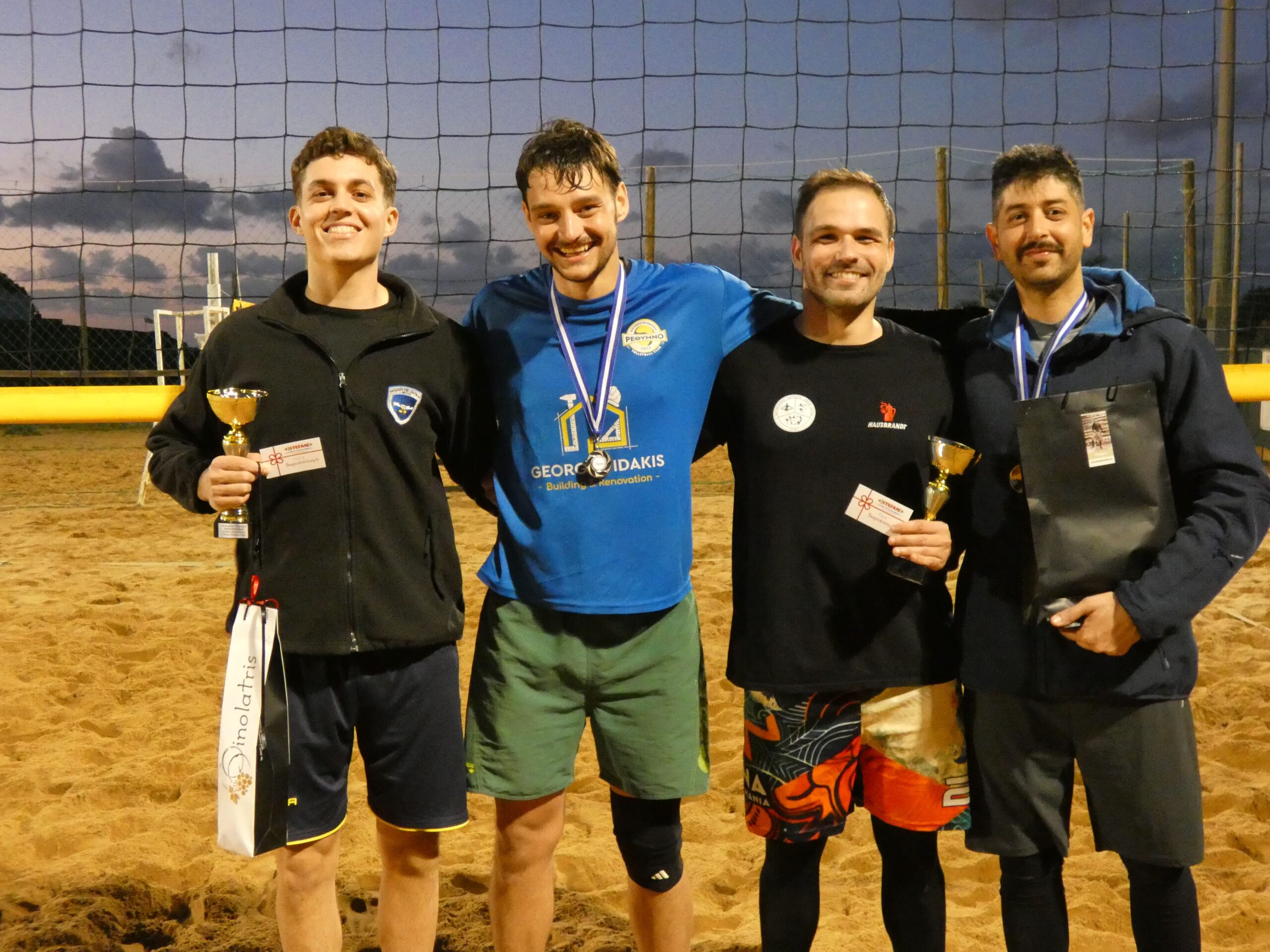 Οι Δρανδάκης/Χατζηδημητρίου λύγισαν στον τελικό τους Χατζηδαμιανού/Τζουγκαράκη με 2-1, αν και έχασαν το πρώτο σετ. Η νίκη τους αποκτά ακόμα μεγαλύτερη διάσταση μιας και ο Δρανδάκης ήταν εκτός δράσης για δυο εβδομάδες λόγω διαστρέμματος, ενώ ο Χατζηδημητρίου έπαθε θλάση στο tie break όταν βρίσκονταν μπροστά με 12-11. Εκει η αντίπαλη ομάδα επέλεξε να σημαδέψει τον υγιή της ομάδας Δρανδάκη, ο οποίος στην ωριμότερη εμφάνισή του φέτος, άφησε τα πολλά άσκοπα δυνατά καρφιά και επέλεξε πιο τεχνικά χτυπήματα. Αξίζουν συγχαρητήρια και στους τέσσερεις για το πολύ όμορφο ματς που παρακολουθήσαμε. Οι νικητές κέρδισαν δωροεπιταγές από το κατάστημα Stefan Αθλητικά είδη ενώ οι δεύτεροι κέρδισαν κέρδισαν ήδη περιποίησης και παραλίας από το Kasimatis Family Shop.